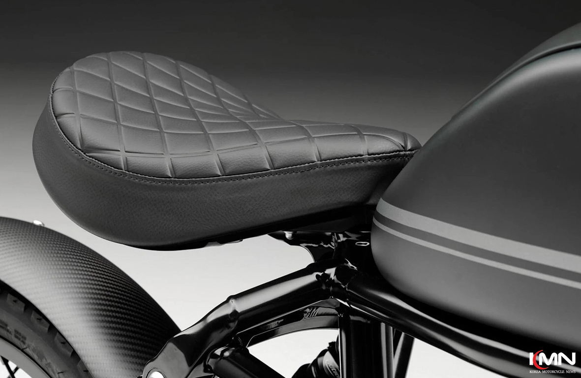 매트 카본 마감 파츠, 블랙아웃 처리된 배터리 케이스, 바 엔드 미러가 시각적 완성도를 높인다. 슬림한 LED 헤드라이트는 빈티지 스타일과 현대적 기능을 접목했으며, 10ℓ 용량의 ‘가솔린 탱크 스타일’ 수납공간에는 USB-C 충전 포트를 내장했다. 주행 정보는 아날로그 계기반과 디지털 디스플레이를 통해 확인할 수 있다.