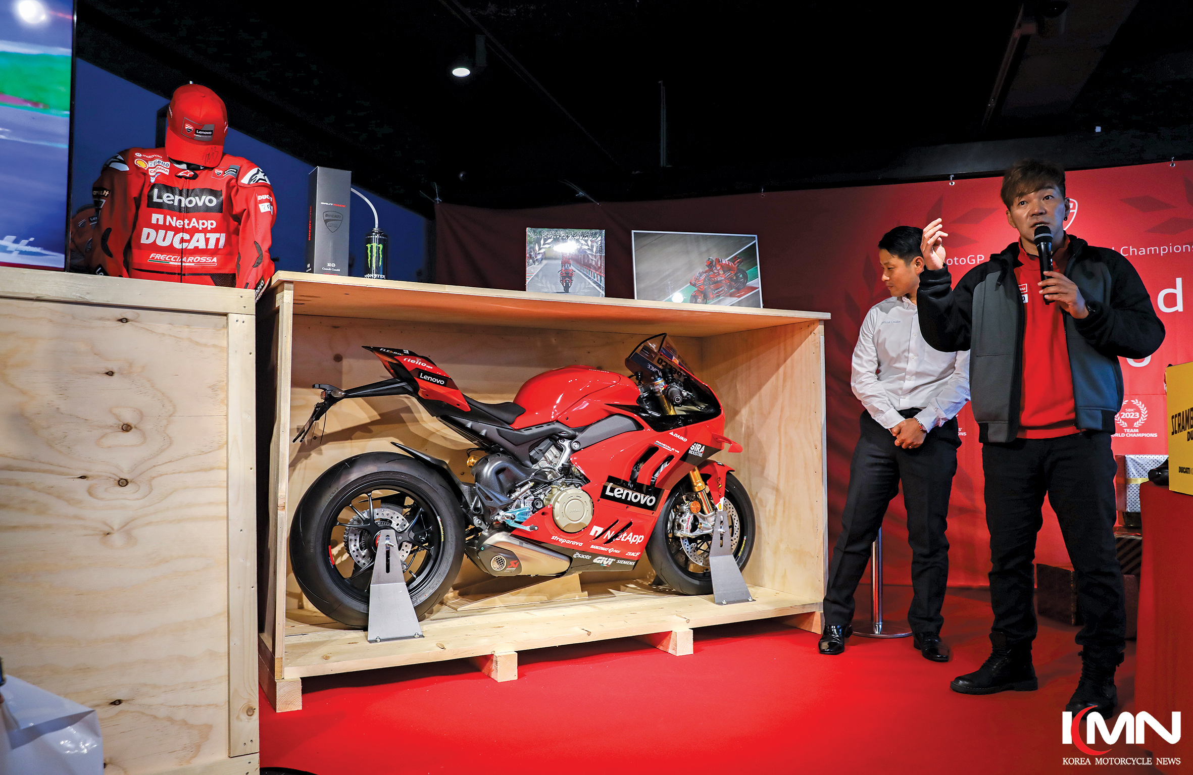참고로 해당 모터사이클은 2022년 두카티의 MotoGP 라이더 및 제조사, 팀 우승을 기념해 파니갈레 V4 S를 베이스로 제작됐다. 2022년 시즌 챔피언 페코 바냐이아의 데스모세디치 리버리와 사인 등 포인트 디자인과 아크라포비치 배기 시스템과 카본 머드 가드 등 최상의 옵션들이 적용된 모델이다. 가격은 1억 5천만 원으로 전 세계 260대 한정 생산됐으며 국내에 입고된 모델은 234번이다.