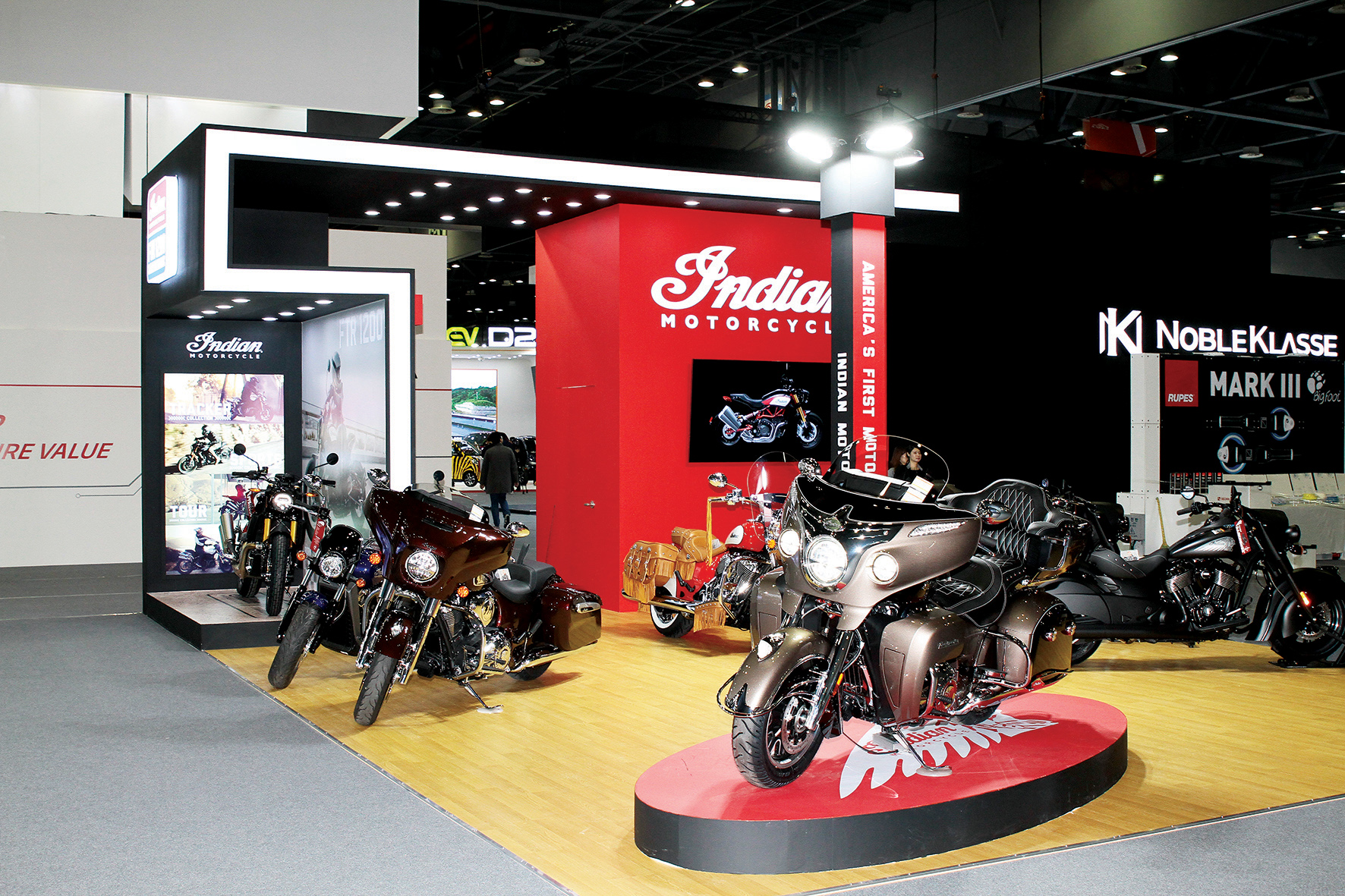 FTR1200 S, 로드마스터, 스카우트와 스카우트 바버, 다크호스, 치프 빈티지, 스프링필드, 치프테인 등을 주요 모델 전시… FTR1200 시리즈는 인디언 모터사이클 최초의 공도용 플랫 트래커 모델