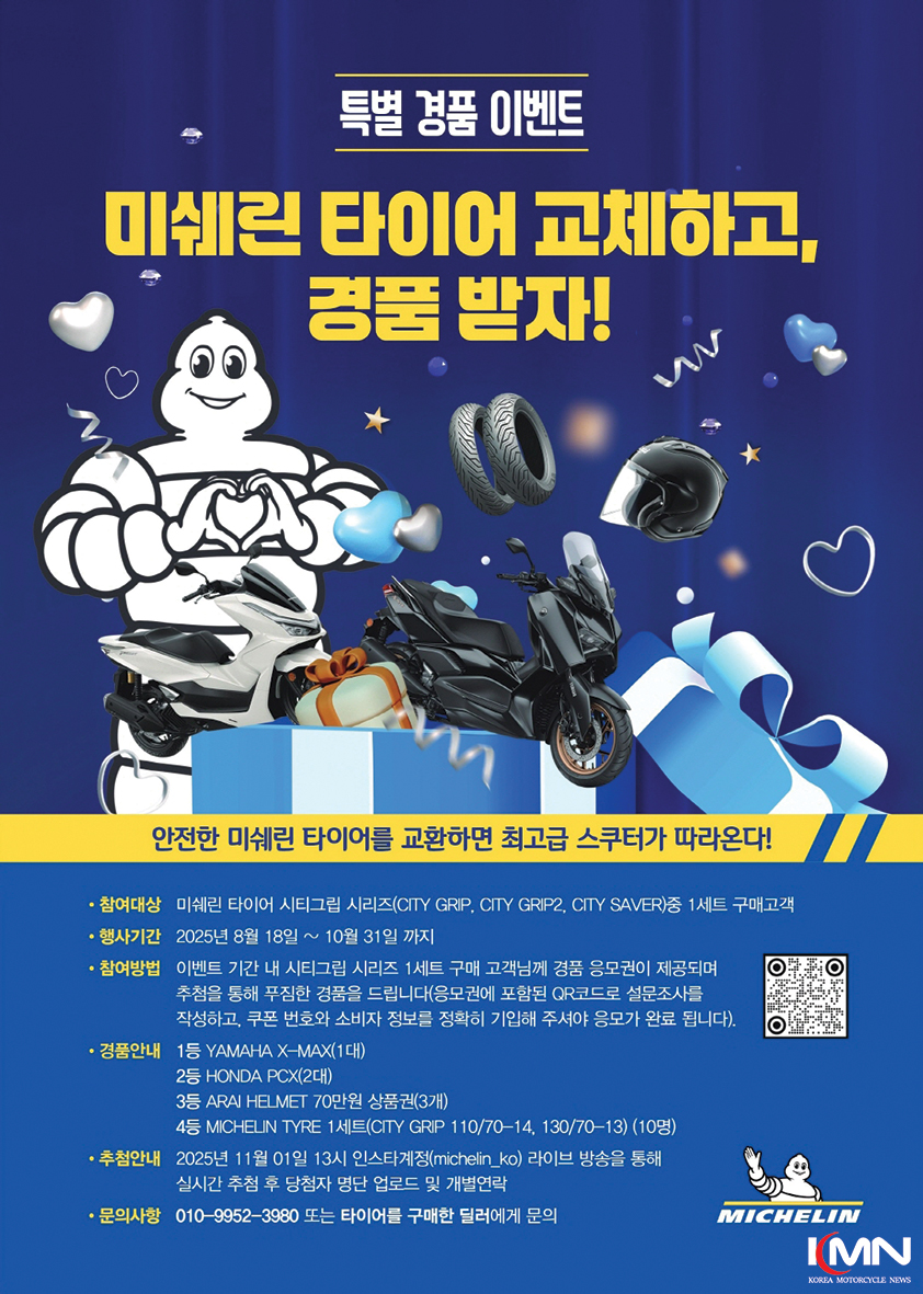 #한국이륜차신문 #모터사이클뉴스 #미쉐린 #시티그립2 #경품이벤트 #XMAX #PCX