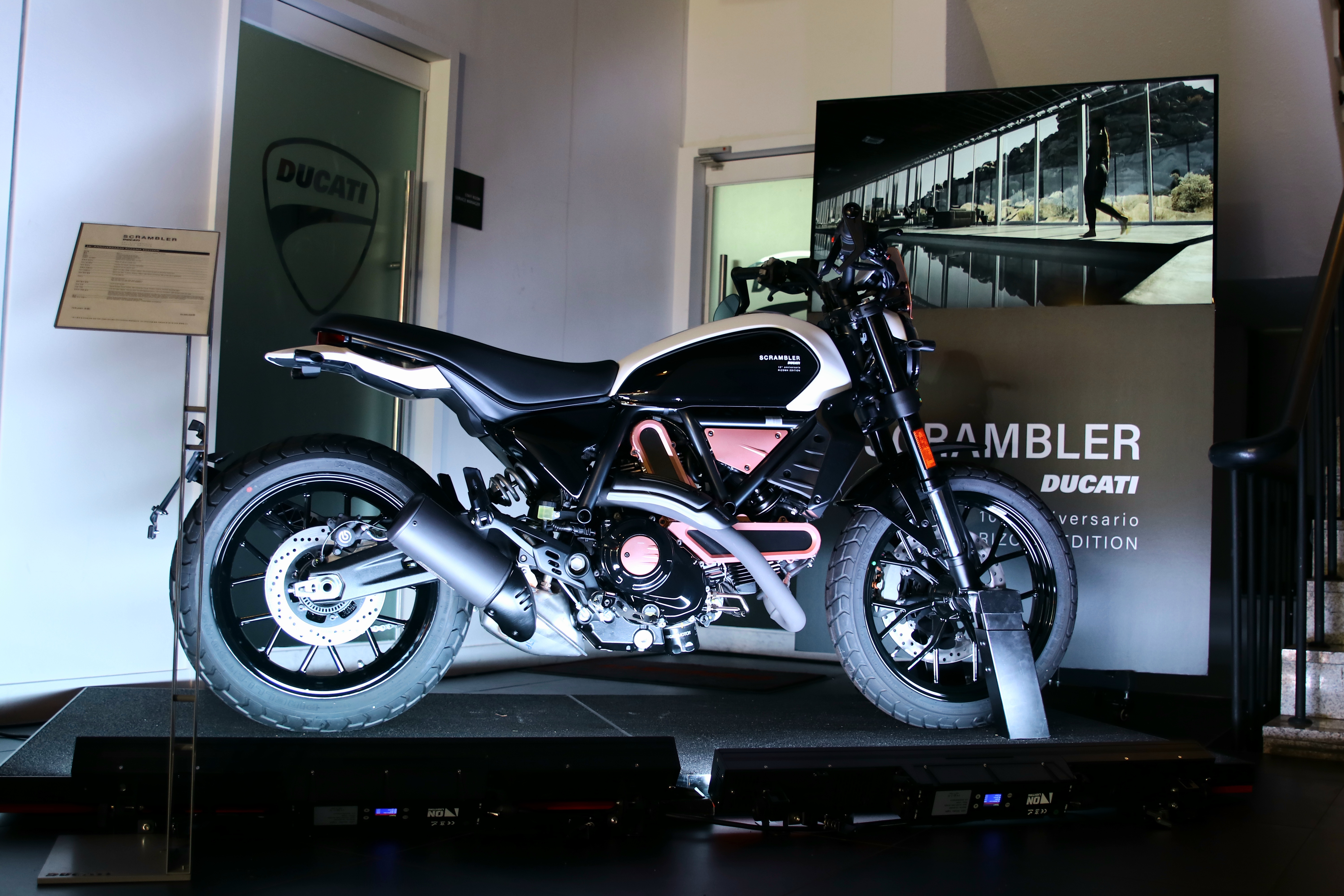 마지막으로 ‘스크램블러 10주년 기념 리조마 에디션’은 전 세계 500대 한정 생산되는 리미티드 에디션 모델로, 리조마와 두카티 디자인센터가 협업하여 완성됐다. 메탈 로즈(Metal Rose) 컬러는 벨트 커버, 풋 레스트, 윈드 실드에 적용됐으며, 블랙 컬러는 연료탱크 커버, 엔진, 섀시, 바 엔드 미러, 그리고 스톤 화이트 컬러는 연료탱크와 리어 휀더에 적용됐다. 스크램블러 리조마 리미티드 에디션의 디자인 감성은 메탈 로즈와 스톤 화이트, 블랙을 결합해 구현한 정제된 균형에 있다.