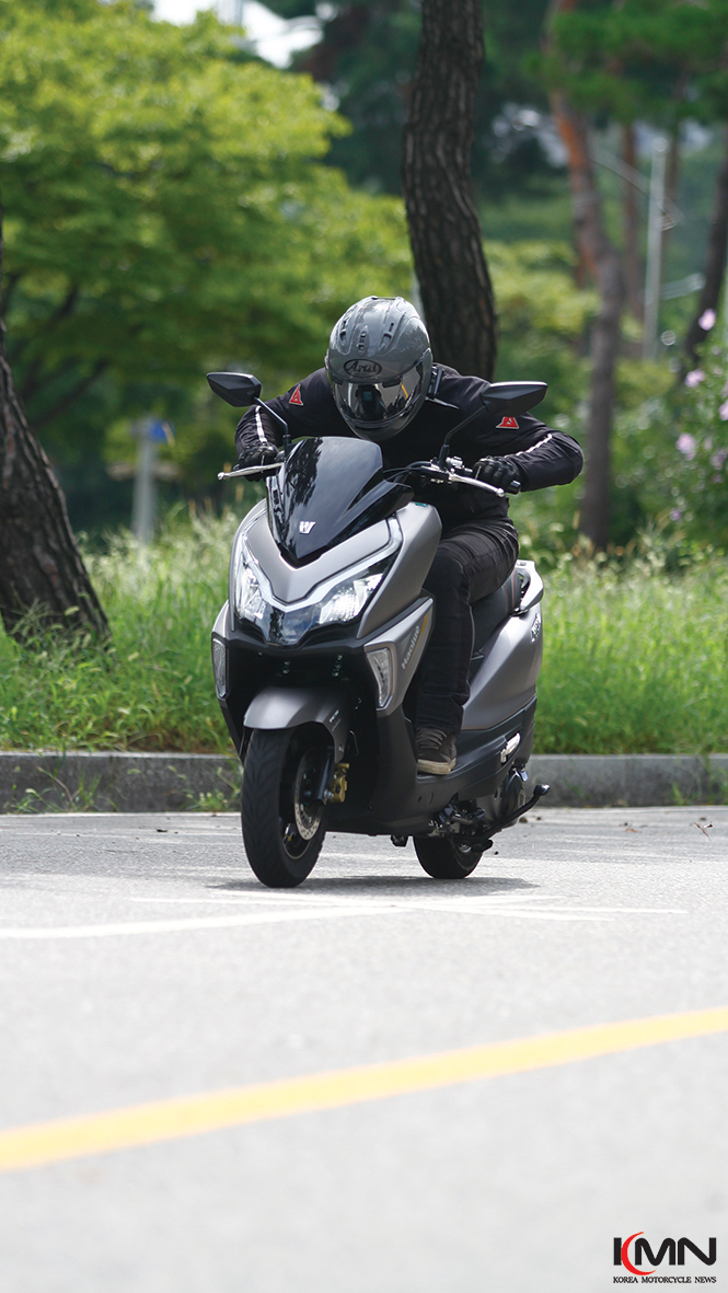 8.98ps의 최고출력은 동급, 같은 장르의 스쿠터들과 비교해 봤을 때 낮지도 높지도 않은 평균적인 수치다. 하지만 눈 여겨 볼 점이 있는데, 최대토크가 발휘되는 시점이 빠르다는 것이다. 도심 주행에서 가장 빈번하게 사용되는 구간인 5,000rpm으로 설정되어 있어, 덕분에 필요할 때 스로틀을 감아준다면 언제든 민첩하게 움직일 준비가 되어 있다.