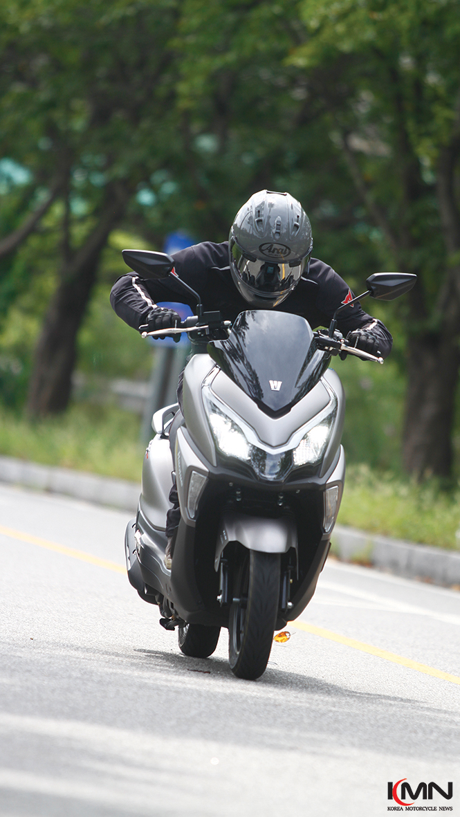 헤드라이트는 필립스 듀얼 로우빔, 하이빔은 오스람 렌즈 조합이다. 특히 하이빔의 조사거리는 최대 150m로, 자동차만큼 밝고 선명한 시야를 제공해 야간주행 시 더욱 안전하다. LED 주간주행등은 헤드라이트와 통합되어 있다.