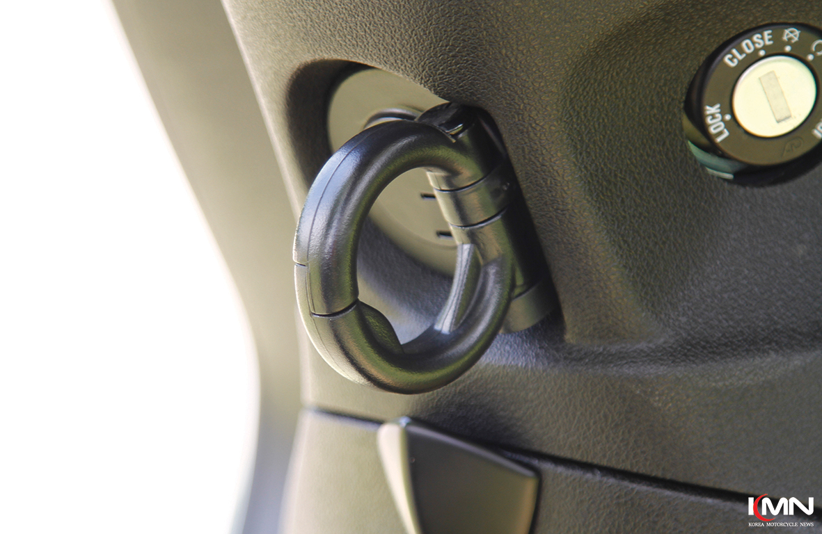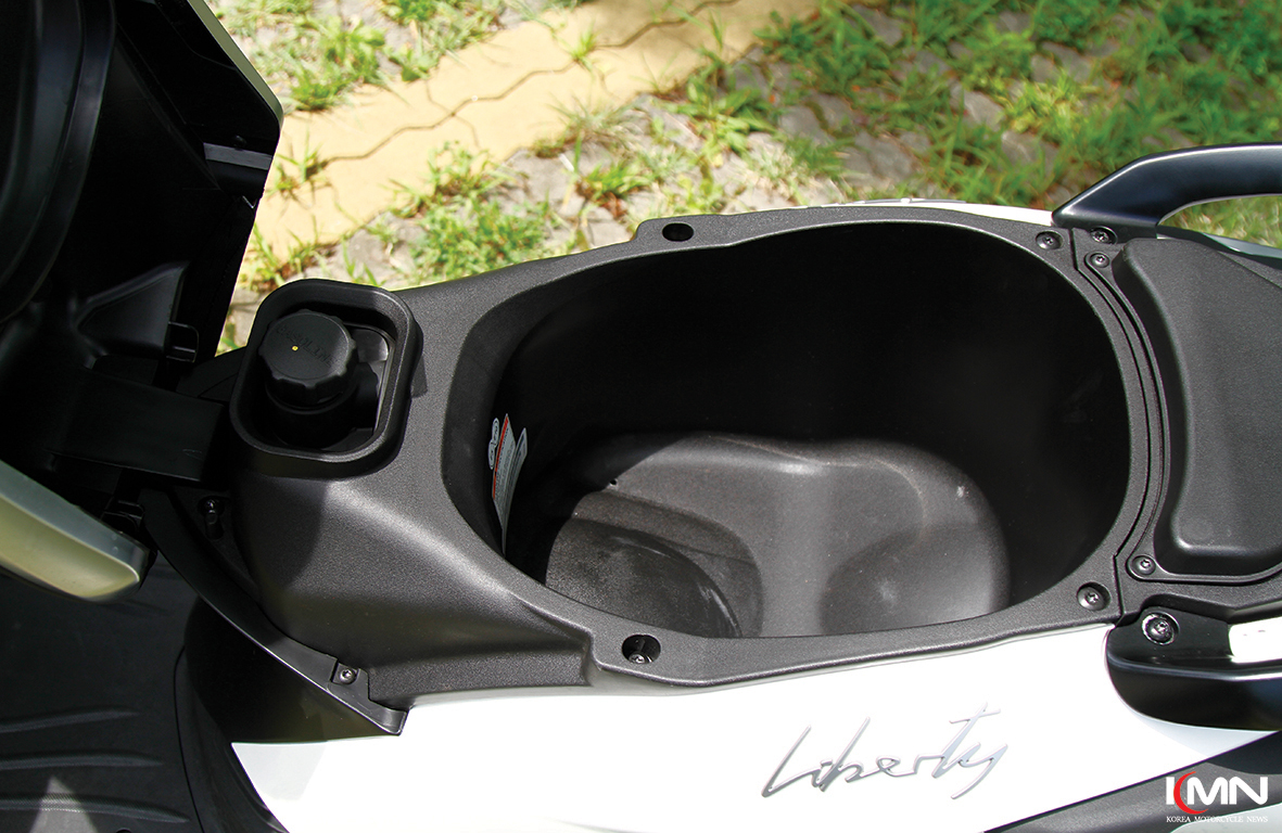 연료 주입구는 시트 아래에 위치한다. 시트는 좌측 핸들 바 쪽에 자물쇠 그림이 그려진 버튼을 눌러 열 수 있다. 트렁크 공간은 풀 페이스 헬멧이 들어갈 정도는 아니지만 오픈 페이스 헬멧이나 우의 같은 간단한 짐을 수납하기엔 충분하다. 탠덤 시트 뒤로 탑 박스를 설치할 수 있는 브래킷이 기본으로 적용된 디테일도 실용성을 높여준다.