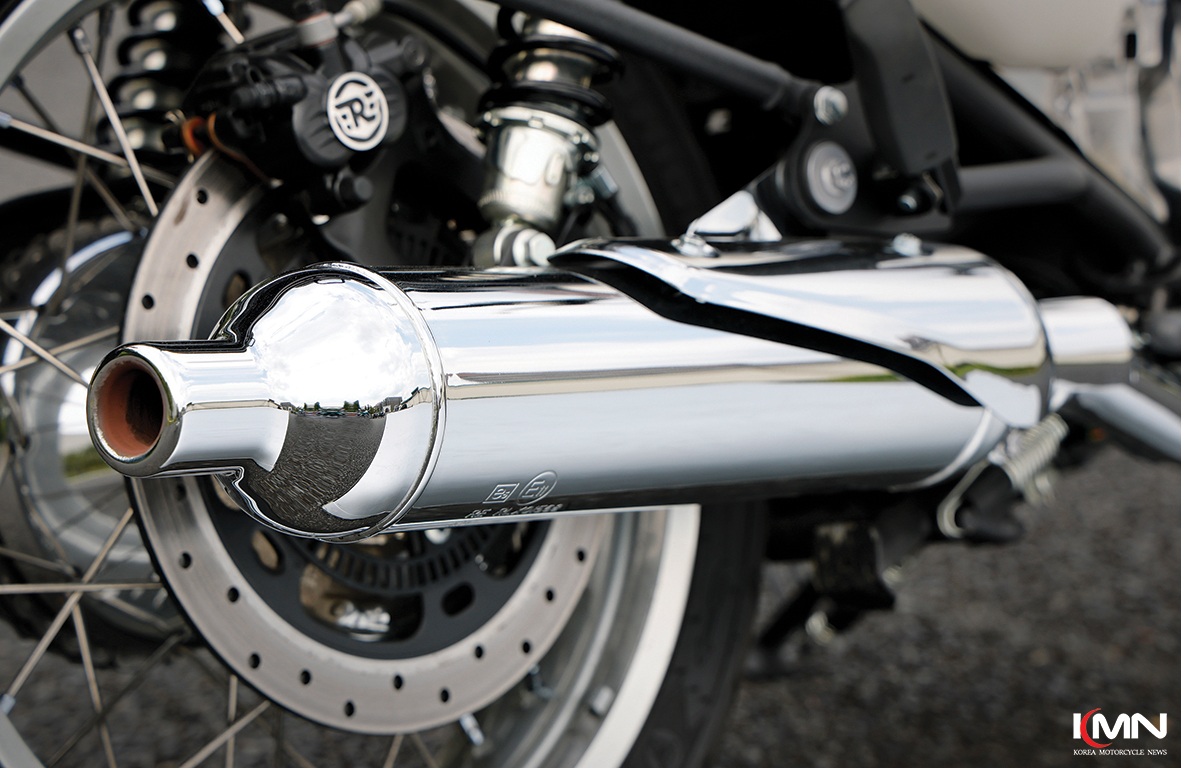 디테일에서도 타협이 없다. 플라스틱 부품을 거의 찾아볼 수 없으며, 앞뒤 펜더는 모두 묵직한 스틸로 제작됐다. 브랜드 특유의 피슈터(Peashoo ter) 스타일 트윈 배기 시스템은 고전적인 분위기를 완성한다.