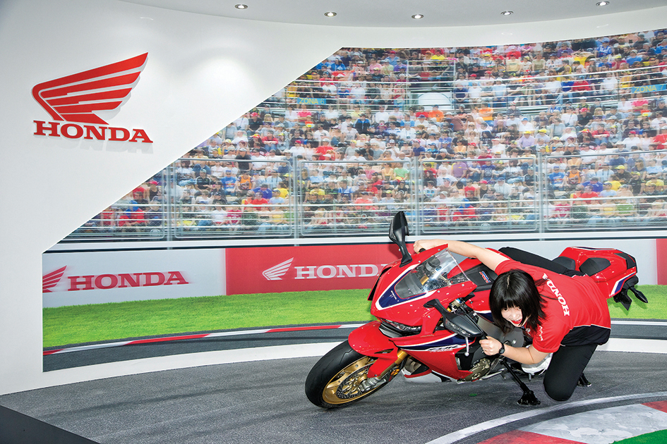 이외에도 혼다 모터사이클의 기술력을 알리기 위해 더블 위시본 프런트 서스펜션과 혼다의 독자적인 기술로 탄생한 3세대 7단 DCT를 분해해서 전시했다. 그리고 관람객들이 레이싱의 간접 경험을 체험할 수 있도록 최상위 클래스 모터사이클 그랑프리인 MotoGP에서 활동하는 선수들의 코너링 각도를 구현해 관람객들이 직접 경험할 수 있도록 호평을 받았다.